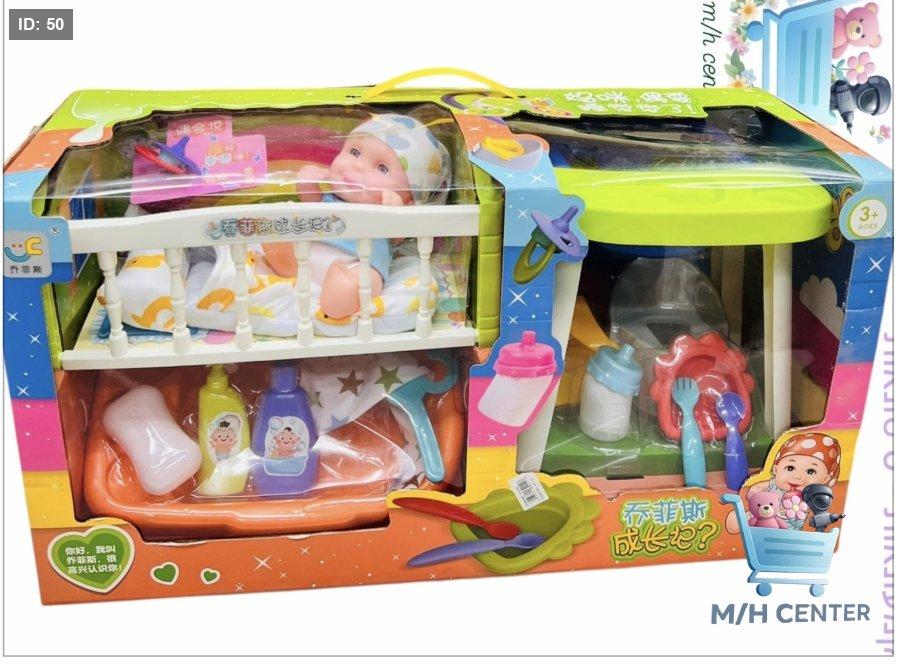 لعبة سيلكون بحجم كبير مع كرسي أكل وتخت وعدة طعام وعدة شور